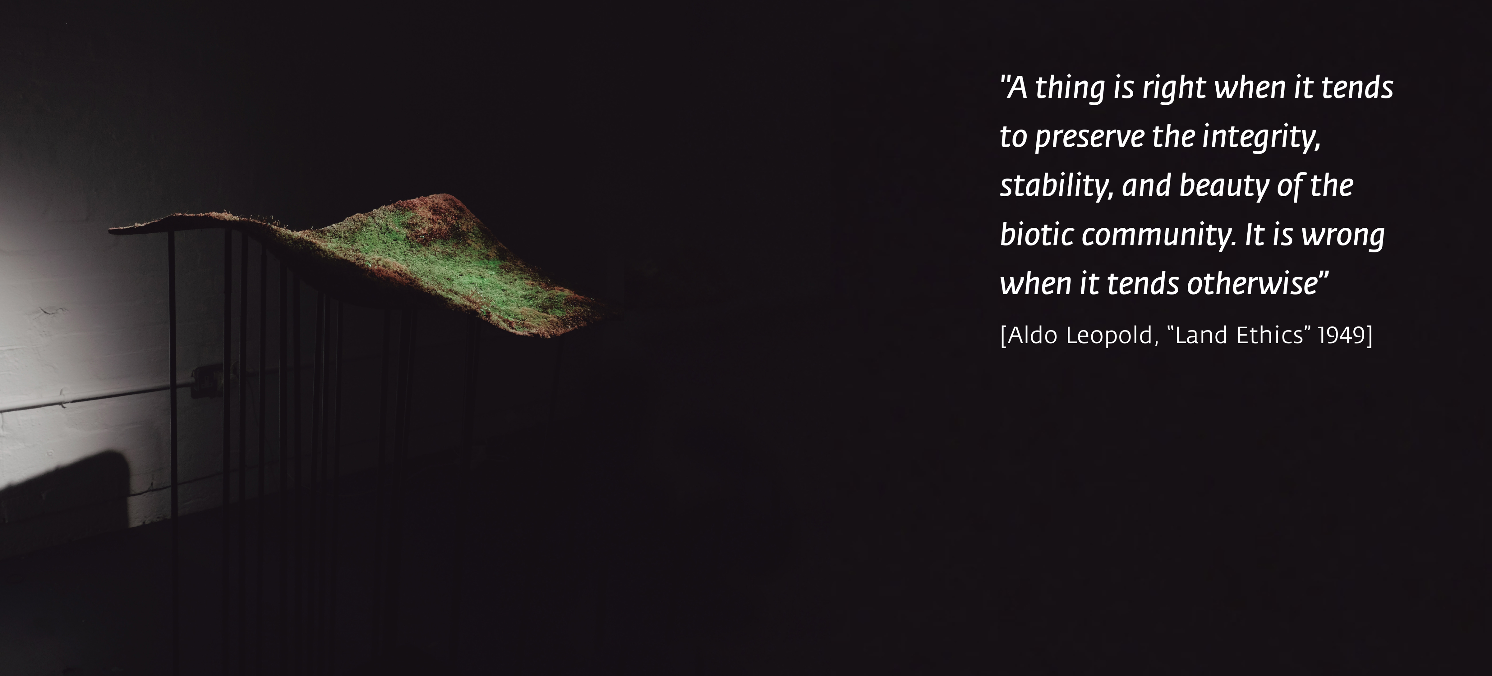 Mosses are uncompetitive, slow and extremely resilient. Moss can survive long stressed conditions in drought or freeze due to its colony structure and sensitivity to environmental changes. Moss colonies are a fascinating antithesis to human capitalist value systems.