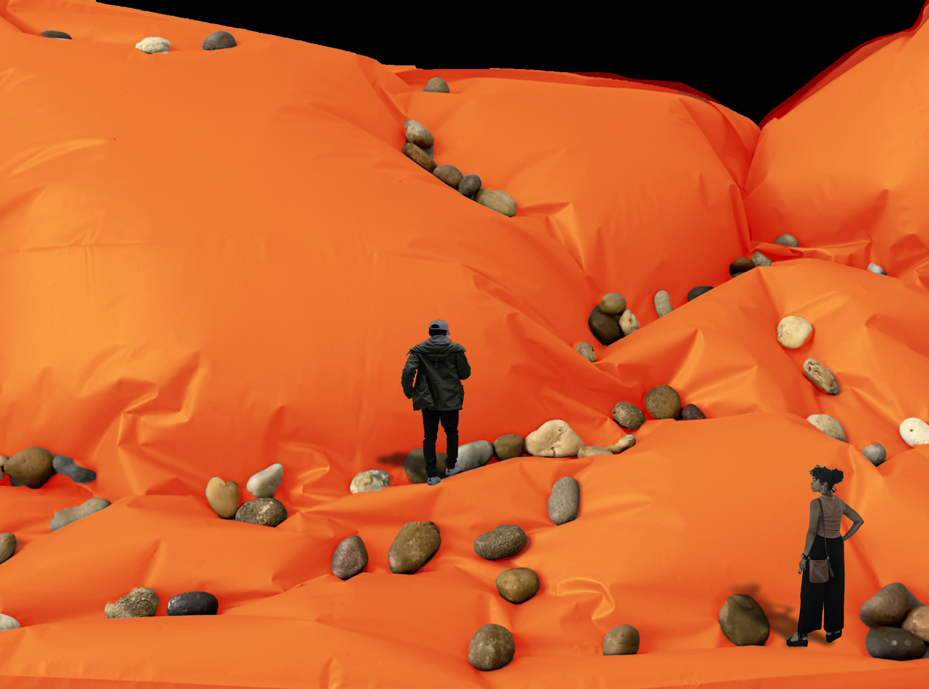 Proposal for an installation at the Turbine Hall, Tate Modern. The huge scale pneumatic landscape structure that forms the installation is designed as a system which is doomed to end up in polarization and catastrophe.